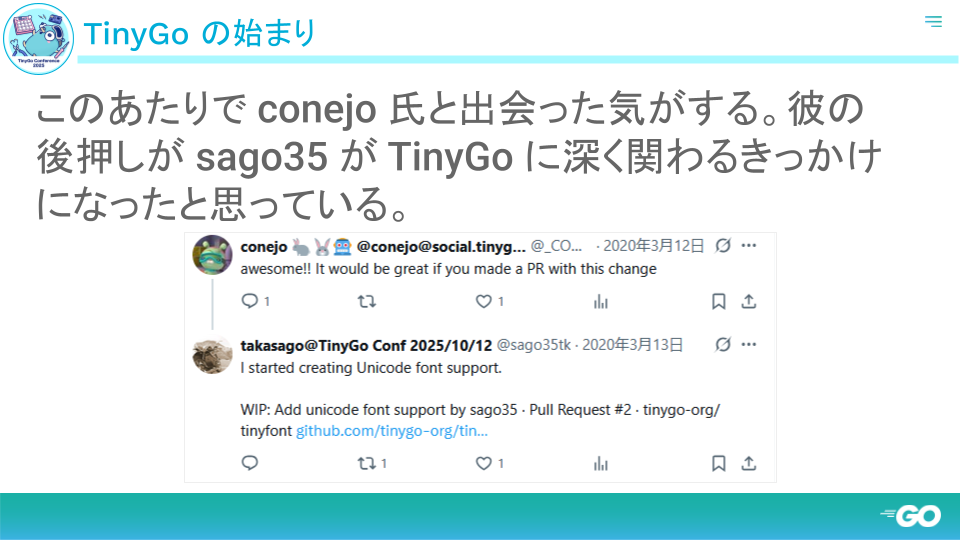 私が TinyGo に深くかかわるきっかけとなったポストは以下だったんだろうな、と改めて思いました。